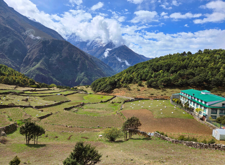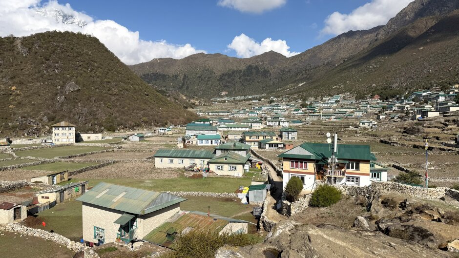 Выходим в Пхандинг. Теперь смотрим на знакомые вершины под новым углом, наслаждаясь их величием и вспоминая названия, которые уже стали, как родные для нас! Посетим отель "Эверест-вью", с его терассы открывается потрясающая панорама на горы. По пути сделаем небольшую остановку на кофе в Намче-базаре. Вечером спустимся на высоту ниже и почувствуем, как здесь легче дышится. Если у кого-то были симптомы горной болезни, то здесь станет комфортнее.