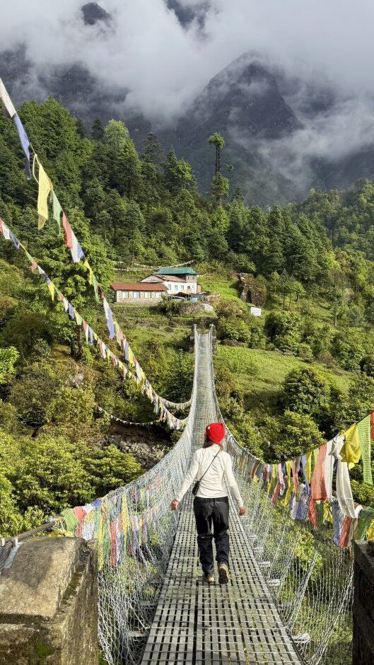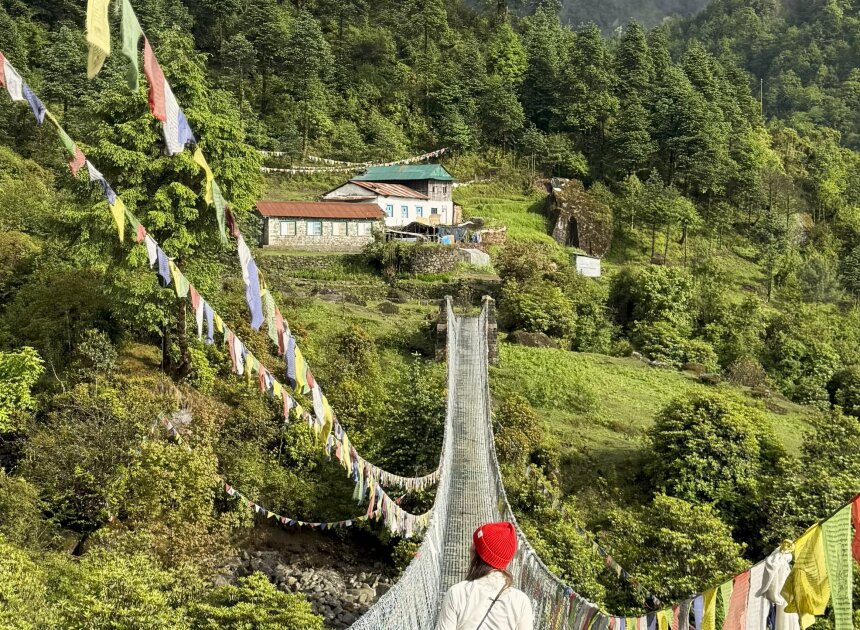Тропа начинает плавно подниматься вдоль живописной реки Дудх-Коси, проходя через череду небольших шерпских деревень и подвесных мостов, украшенных молитвенными флажками. К обеду окажемся в Лукле — уютном горном посёлке с оживлённой атмосферой. Это отправная (или финишная) точка для большинства путешественников. Вечером прощальный ужин с портерами.