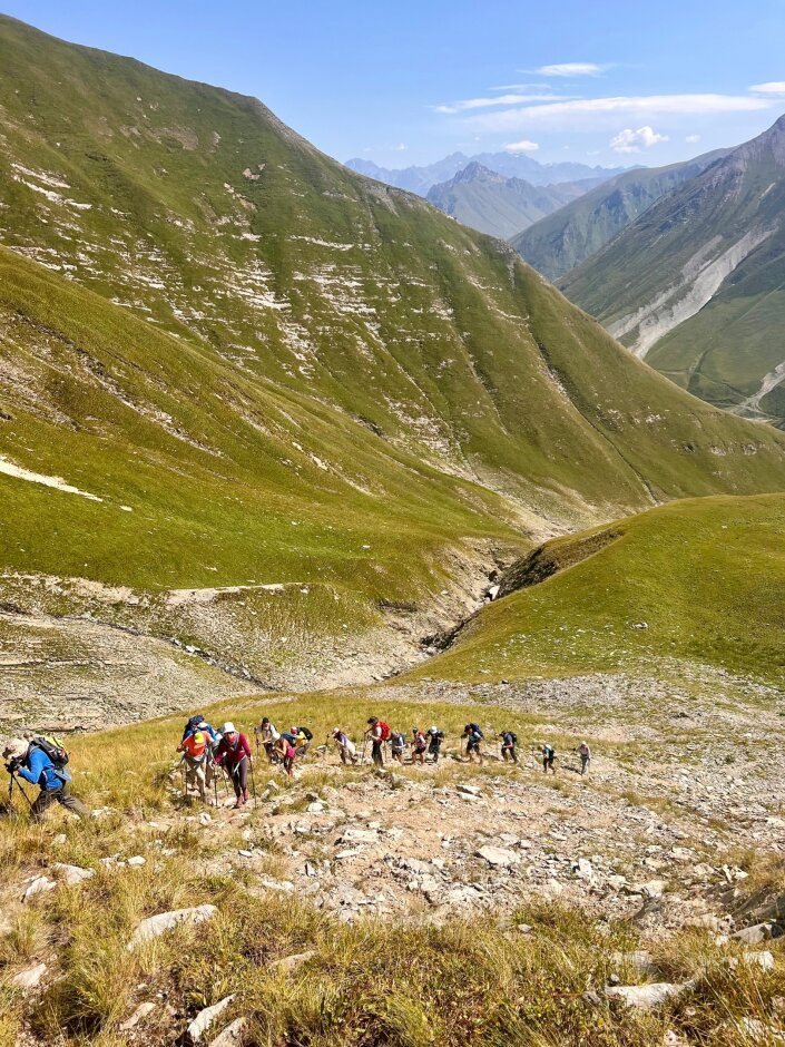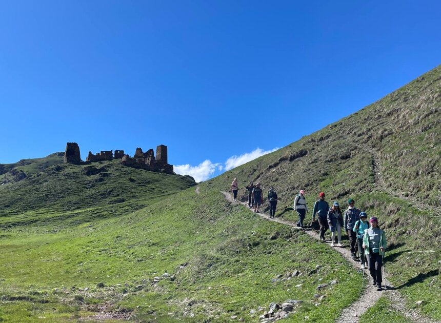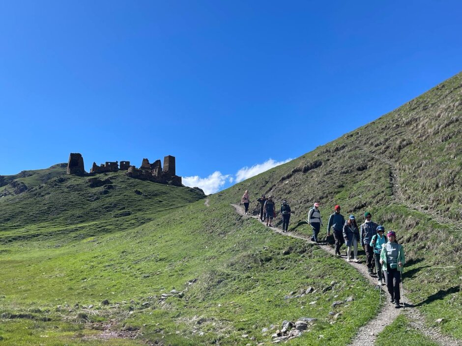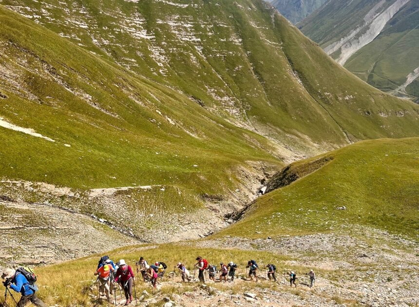 Маршрут начинается в поселке Гергети и проходит по среднему морению между реками Чхери и Блота. Осмотрев долину, будем подниматься на горный отрог, который разделяет два крупных ледника у подножья горы Казбек: Гергетский и Абано. По пути нам откроются виды на горы Большого Кавказа: Орлиную вершину, Куру и Ангелогисцта, которые возвышаются над Степанцминдой. Главная достопримечательность - это Казбек (высота 5054 м). Прогулка среди березовых лесов перейдет в прогулку по просторам альпийских лугов. Поднимемся на смотровую площадку и приготовим обед.