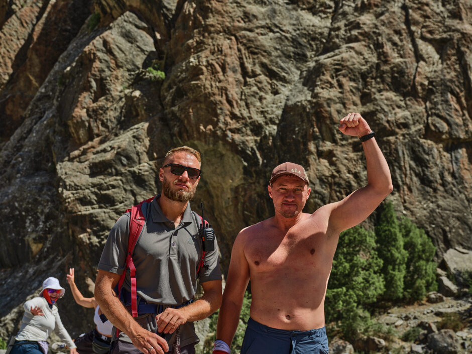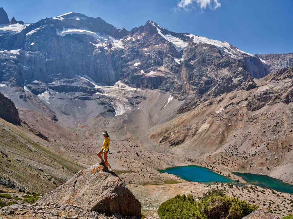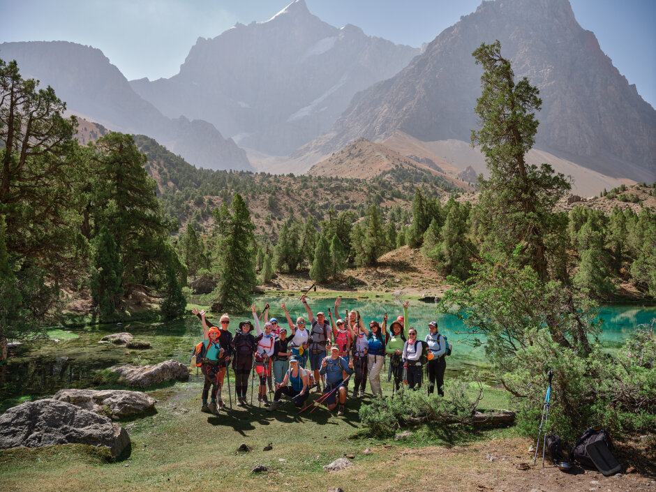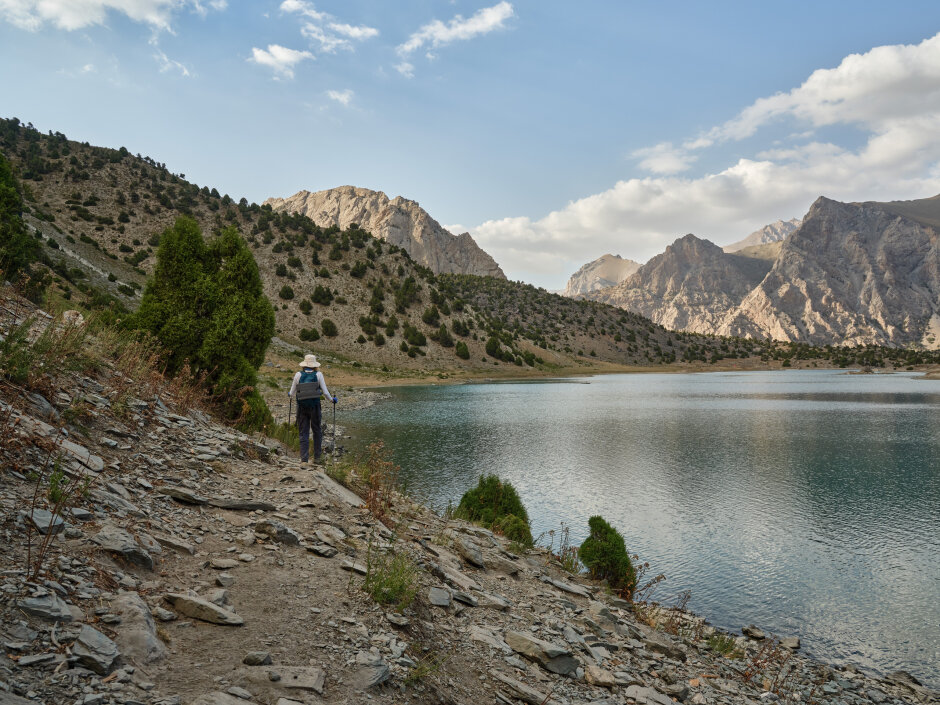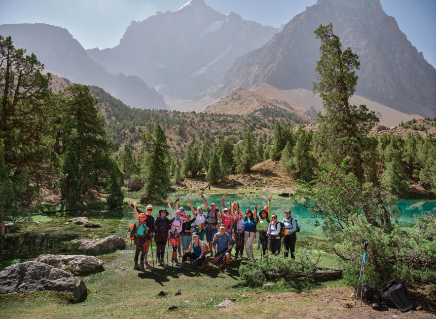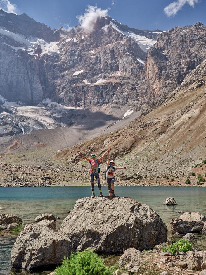 Сегодня переход через перевал Алаудинский. С его вершины откроется захватывающий вид на Куликалонские озёра, сияющие внизу бирюзовыми оттенками. Дальше тропа поведёт нас в долину реки Чапдара, где спрятаны знаменитые Алаудинские озёра. Эти моренные озёра одни из самых красивых в Фанах. Их вода меняет цвет в течение дня: от нежно-бирюзового утром до густого ультрамарина к вечеру. Глубина достигает 16 метров, но прозрачность такая, что виден каждый камень на дне. Самое крупное озеро — Большое Алаудинское. Чуть в стороне от тропы лежит Восточное, более уединённое. Лагерь разобьём на берегу Большого Алаудинского: здесь есть тень деревьев и место для костра — идеальное завершение насыщенного дня.