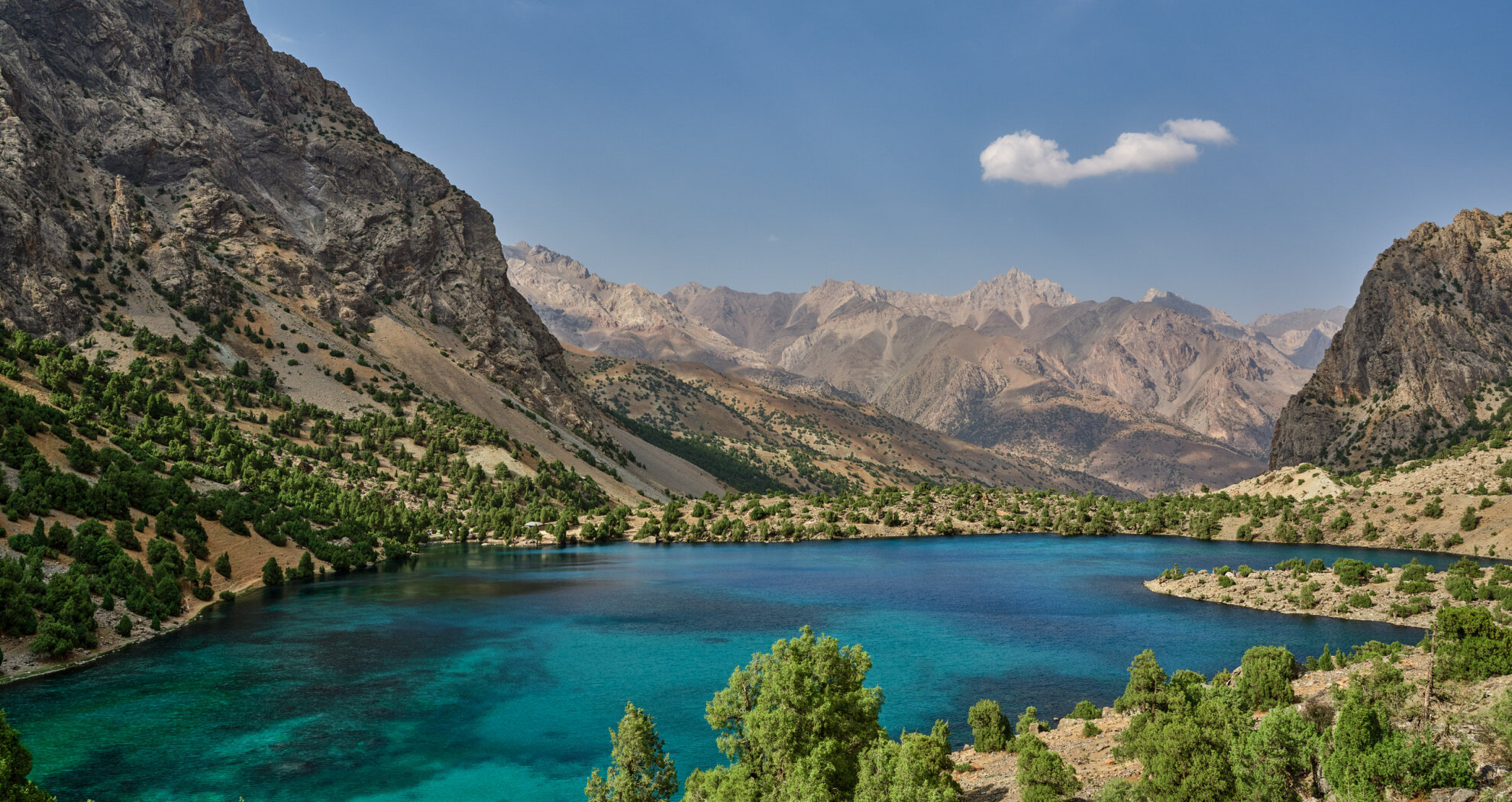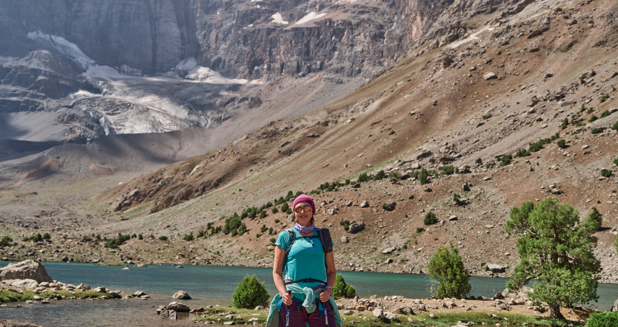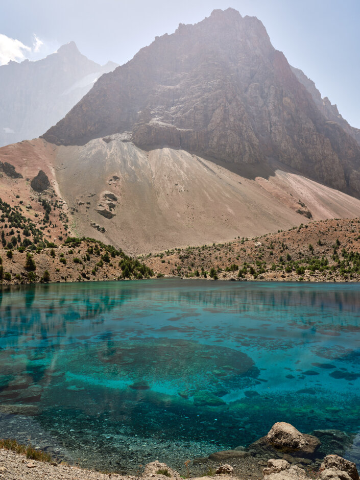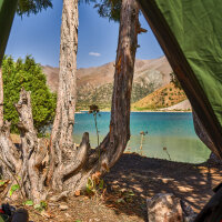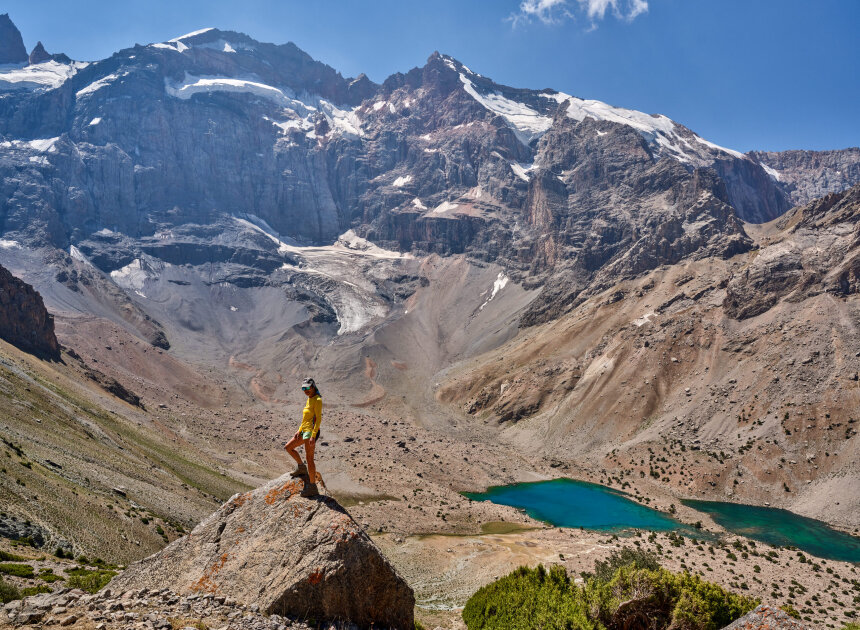 Сегодня переход через перевал Алаудинский. С его вершины откроется захватывающий вид на Куликалонские озёра, сияющие внизу бирюзовыми оттенками. Дальше тропа поведёт нас в долину реки Чапдара, где спрятаны знаменитые Алаудинские озёра. Эти моренные озёра одни из самых красивых в Фанах. Их вода меняет цвет в течение дня: от нежно-бирюзового утром до густого ультрамарина к вечеру. Глубина достигает 16 метров, но прозрачность такая, что виден каждый камень на дне. Самое крупное озеро — Большое Алаудинское. Чуть в стороне от тропы лежит Восточное, более уединённое. Лагерь разобьём на берегу Большого Алаудинского: здесь есть тень деревьев и место для костра — идеальное завершение насыщенного дня.