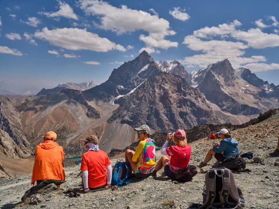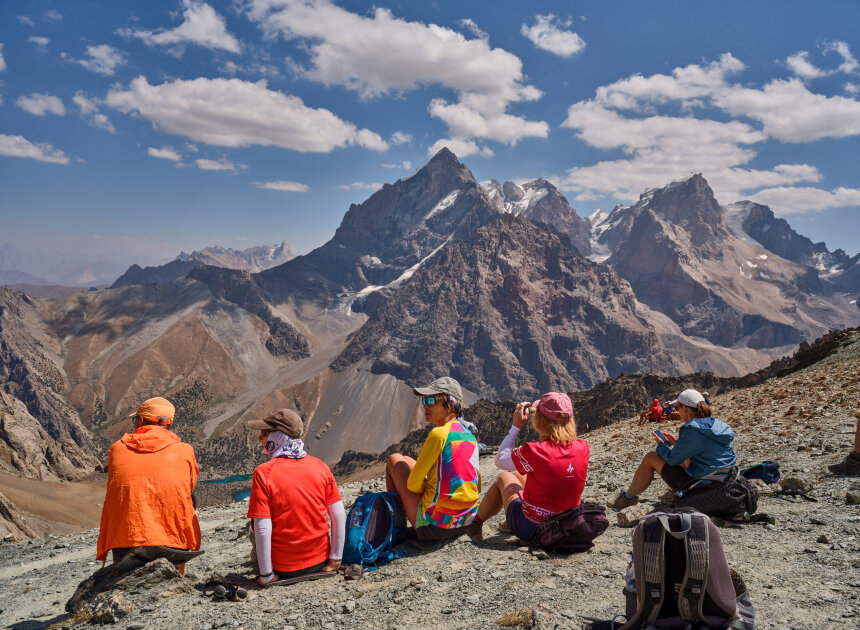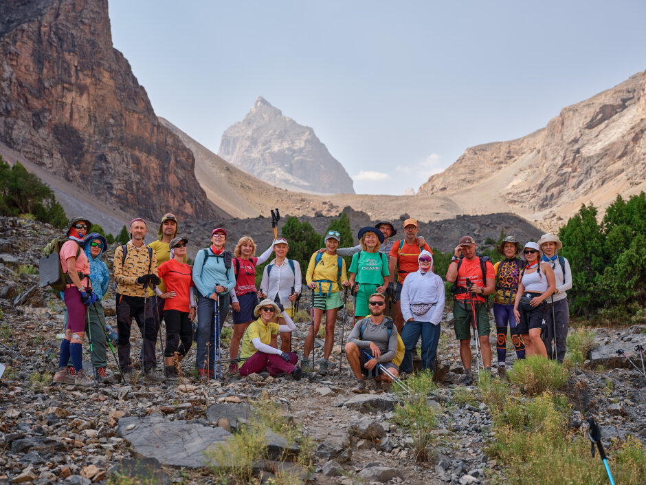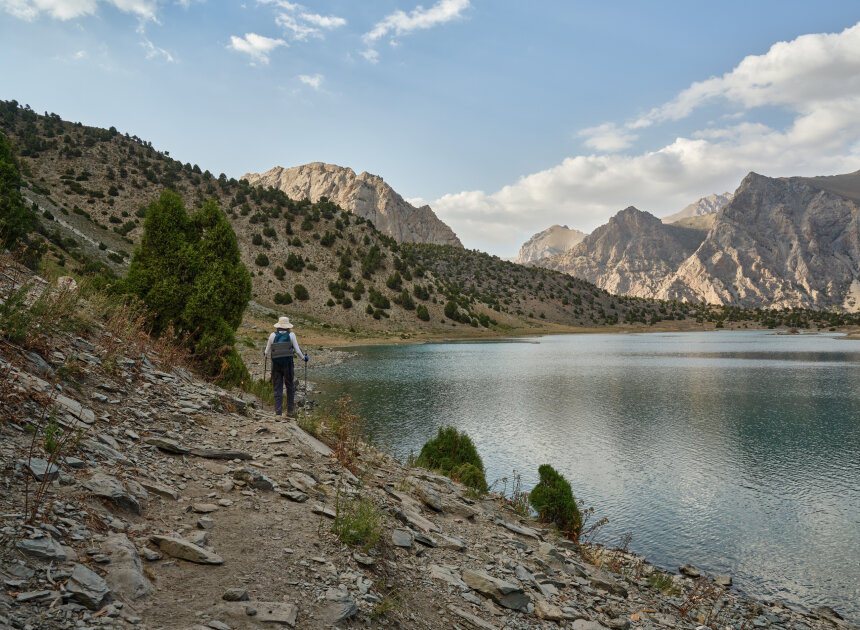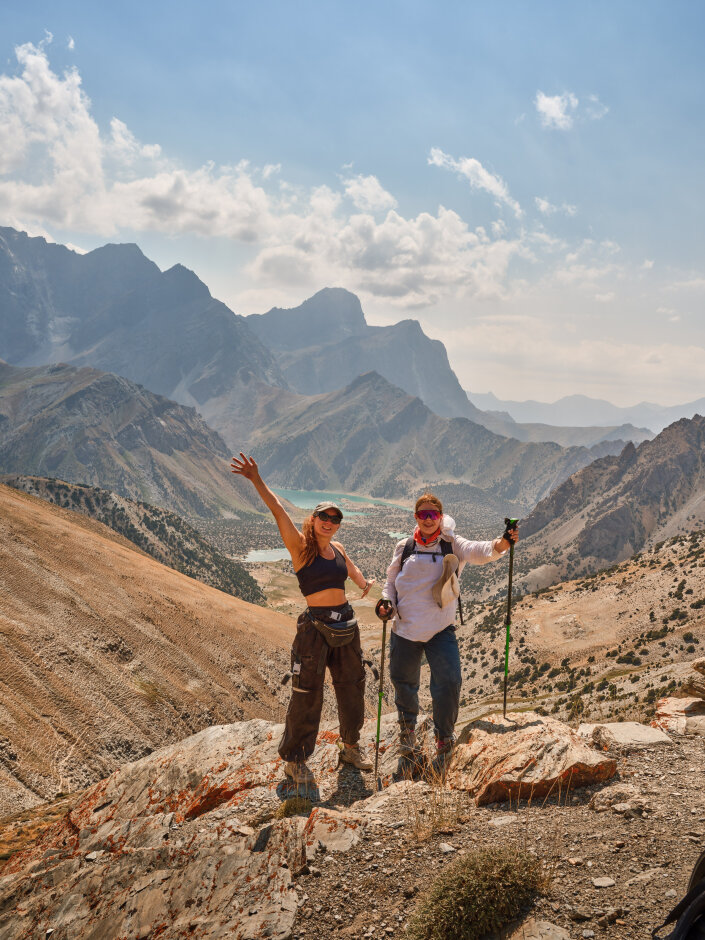 Начинаем поход через альплагерь «Вертикаль», откуда берут старт многие восхождения в Фанах. Атмосфера лагеря с видами на пики сразу задаст настроение приключения. Дальше будем подниматься к перевалу Лаудан, преодолевая травянисто-осыпные склоны. С вершины перевала откроется потрясающая панорама: внизу сверкают озёра, а вокруг поднимаются величественные горы. Над озёрами возвышается гора Политехник (4241 м), за ней виден массив Чапдары (5049 м). Справа — пик Адамташ (4579 м). После короткого отдыха спускаемся к озеру Бибиджонат. По пути нас будут сопровождать виды на гору Мирали и озеро Лесное.