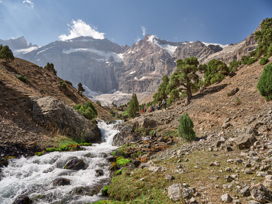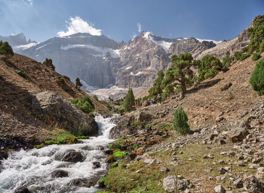 Утром выходим с базы Артуч и поднимаемся по живописной тропе через еловый лес и альпийские луга. С каждым шагом открываются всё более захватывающие виды Фанских гор, а на пути встречаются кристально чистые реки и водопады. Вечером выходим к жемчужине Фан — Куликалонскому озеру. Здесь разобьём лагерь прямо у воды: ужин у костра, закатные краски на вершинах и отражения звёзд в озере сделают вечер по-настоящему волшебным.