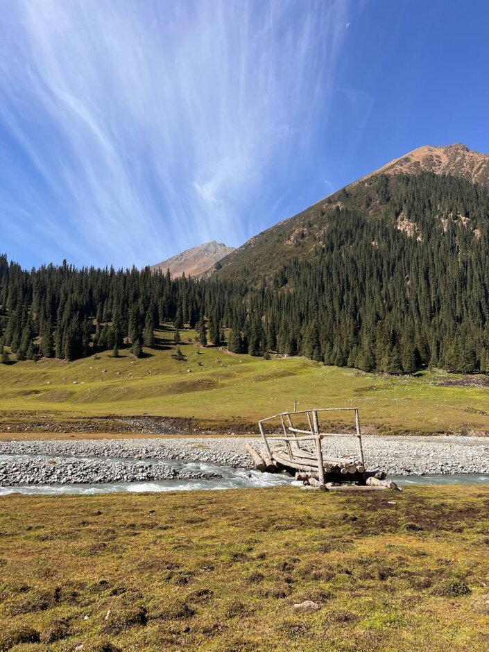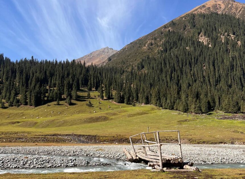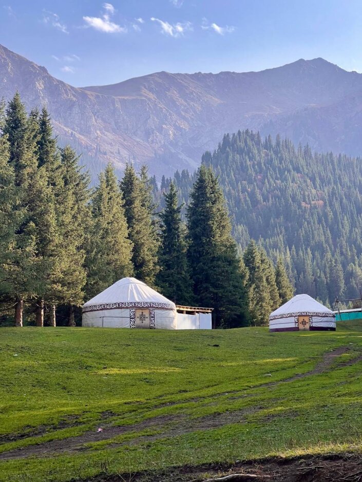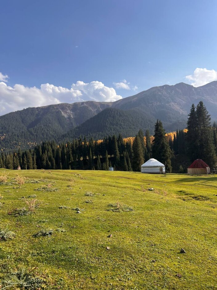 Поедем на внедорожнике в ущелье Алтын Аршан. Здесь погуляем среди тянь-шаньских сосен высотой до 60 м. Пройдем по ущелью с видами на ледник и вершину Аксуйской стены - пик Палатка. В завершении похода отдохнем в сероводородных термальных источниках с видом на горы.