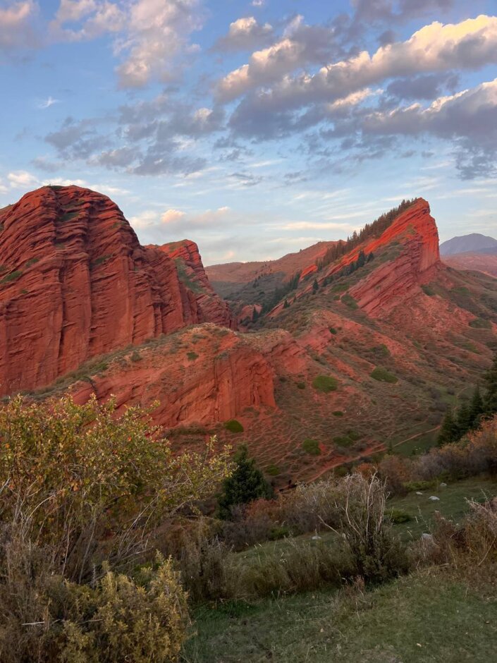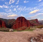 Отправимся в ущелье Джет-Огуз, знаменитое необычными красными скалами, которые напоминают "Гранд каньон" в Америке. Прогуляемся к водопаду Девичьи косы и посетим Долину цветов (Кек-Джайык), где в 1970-х годах тренировались советские космонавты. Увидим быт и жилище кочевников. Вечером вернемся в отель, где ждет ужин из местных продуктов.