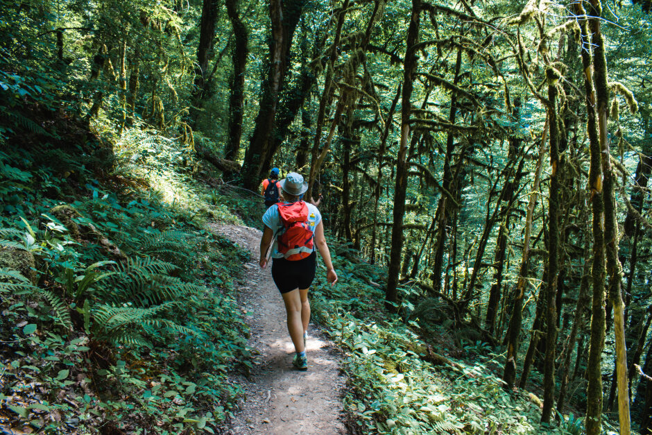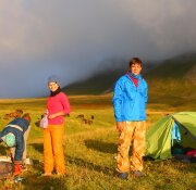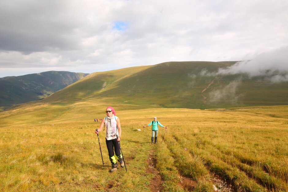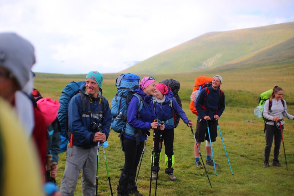 Переход с рюкзаками за день 12 км, перепад высот 500 м.